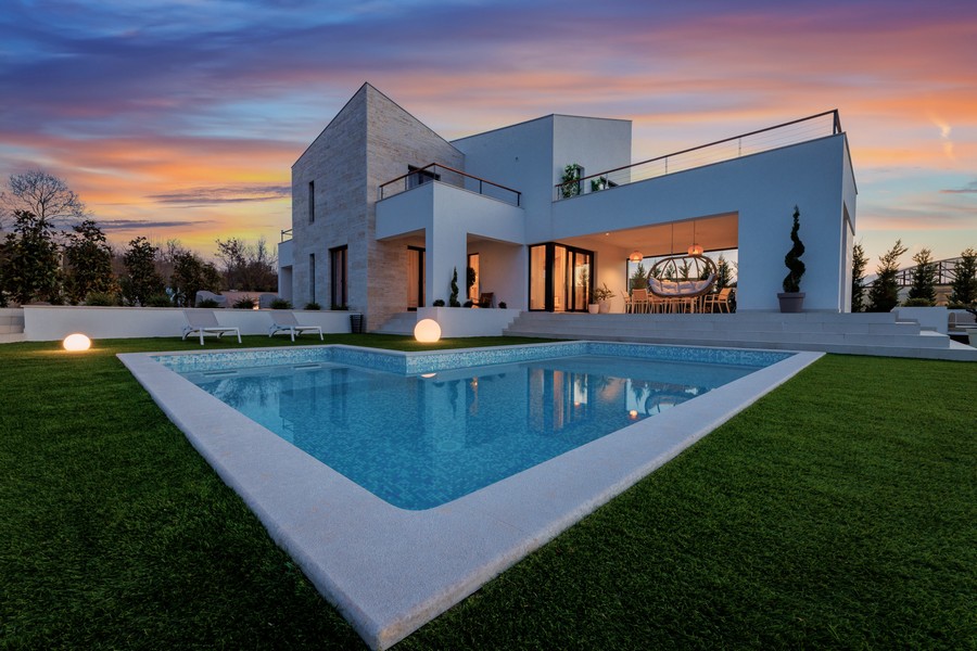 Malinska, ön Krk: Modern lyxvilla med pool och havsutsikt