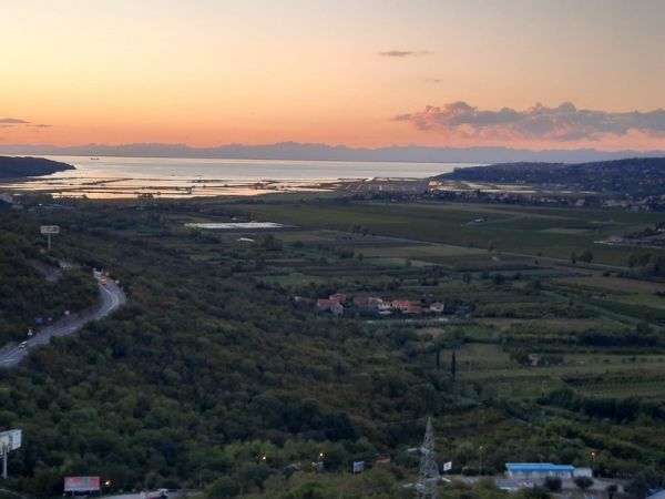 Buje, Umag-regionen: Stenhus med utsikt över berg och hav