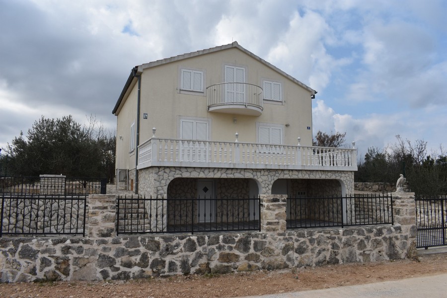 Detta delvis möblerade hus med två lägenheter är till salu i ett lugnt läge i Pridraga-regionen på Karinsko More i Zadar-regionen, Dalmatien.