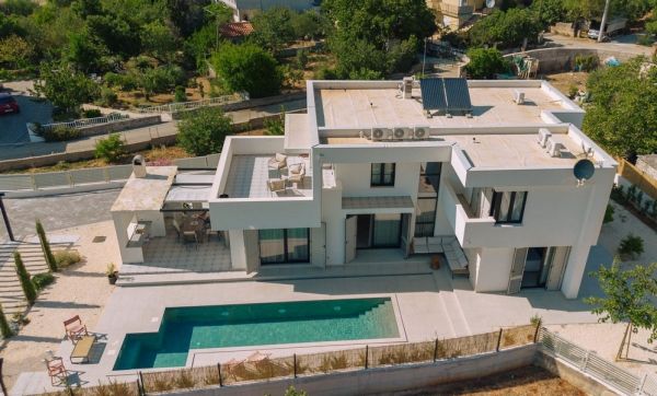 Villan byggdes 2024/2025 på en 1000 m² stor tomt och erbjuder en boyta på ca. 200 m² med följande rumslayout i två våningar: