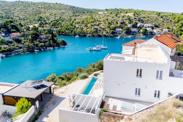 Detta erbjudande är en nybyggd villa med pool med panoramautsikt på ön Brač i Dalmatien. Fastigheten ligger i en lugn och naturlig miljö, omgiven av medelhavsvegetation, och erbjuder vacker utsikt över havet och bukten.