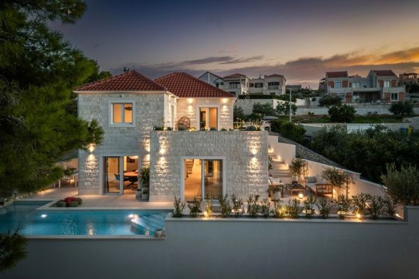 Högkvalitativ villa i dalmatisk stil med pool och havsutsikt på Brač