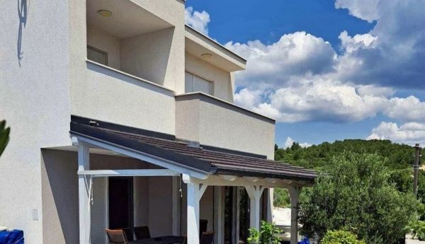 Denna fastighet är en modernt inredd etagelägenhet med trädgård (ca 120 m²) och pool i Tisno, Dalmatien.