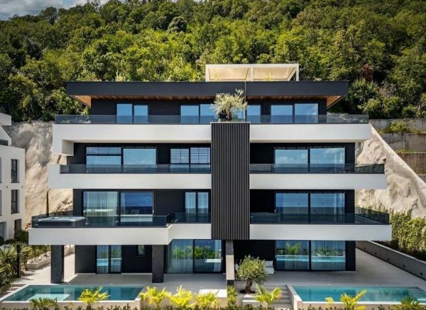 Detta erbjudande gäller lyxiga nybyggda lägenheter med havsutsikt i Opatija, Kvarnerbukten. Lägenheterna på bottenvåningen har varsin privat pool. Följande lägenheter är för närvarande till salu: