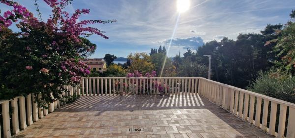 Detta erbjudande är en rymlig lägenhet på bottenvåningen med en stor terrass och havsutsikt i Orebic på halvön Peljesac i södra Dalmatien.