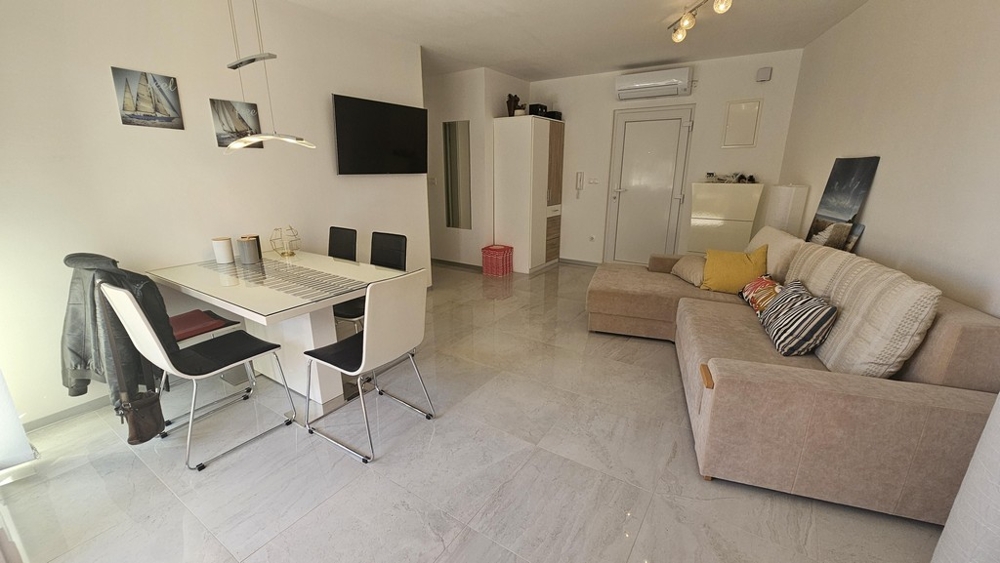 Denna attraktivt inredda lägenhet på bottenvåningen med trädgård och vacker havsutsikt är till salu i ett attraktivt läge nära Njivice, ön Krk (broförbindelse till fastlandet).