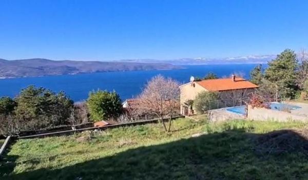 Den här fastigheten är en byggnadstomt i ett lugnt panoramaläge med en fantastisk utsikt över havet och kusten i en mindre stad nära Plomin i regionen Labin/Rabac på Istriens östkust.